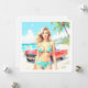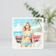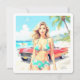 Tarjeta Festiva Chica en la playa con un coche clásico