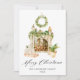 Envíe a sus seres queridos saludos de vacaciones con nuestra hermosa tarjeta de vacaciones sin foto. La elegante tarjeta de vacaciones cuenta con una corona de flores acuáticas y una chimenea adornada con decoraciones navideñas y vegetación. La frase "Feliz Navidad" se muestra debajo en un guión de caligrafía negro y moderno. Personalice la parte delantera de la tarjeta de Navidades no fotográficos agregando su nombre y el año. La tarjeta se revierte para mostrar el mensaje de su personalizado con un fondo verde sabio.