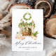 Tarjeta Festiva Chimenea acuarela Boho con vegetación no fotográfi