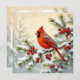 A sweet Christmas cad with a red cardinal sitting on a snowy pine branch covered in snow and red berries. On the back you can add your own custom message and three photos.