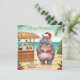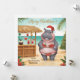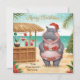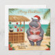 Send warm holiday cheer straight from the beach with this charming Hippo Christmas Cocktail Party Greeting Card. Designed in bright modern watercolor, the card features a festive hippo wearing a poinsettia-patterned bikini and Santa hat, standing beside a tropical cocktail bar on a sunny beach.