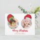 Jolly Santa Claus and whimsical and cute Jolly Elf from the North Pole. This Whimsical and Fun Multi photo Christmas photo card template has a 3 photo layout. Having fun adding your photos to this layout is easy with this funny and cute design with cute hats. Wish you and yours a very Merry Christmas with this whimsical template. This design features merry Christmas cute multi photo,2 two picture collages, whimsical Santa Claus north pole, modern simple minimalist typography, funny watercolor clean trendy, modern elegant simple trendy, modern calligraphy script font, elf and Santa hats, circle round photo grid