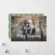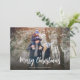 This simple minimalist photo card design features Christmas modern simple 1 photo, family one picture minimalist text, a clean trendy classic traditional minimal, and hand-lettered script calligraphy, merry Christmas script typography, full bleed simple and minimal, with modern calligraphy script font, modern elegant simple trendy, white text overlay, simple Christmas photo cards With a red snowflake pattern style.