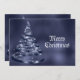 Tarjeta Festiva Christmas Greeting Shiny Blue Ribbon Tree Sparkle