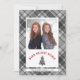 This flat Christmas card features a trendy charcoal and gray plaid background. A white box, in the center, offers a photo frame for your favorite family photo and is accented with a small graphic of a spruce tree. Red curved text reads: Warm Winter Wishes.