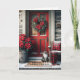 Tarjeta Festiva Christmas Poinsettias and Tabby Cat On Doormat