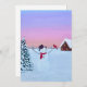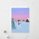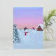 Acrylic painting of a cute snowman admiring a cardinal at sunset on Christmas eve
