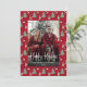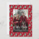 Personalized Holiday Photo Card Whimsical Watercolor Christmas Tree, Wine & Cheese on a festive red background.