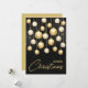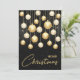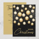 Business holiday greeting cards feature gold and white Christmas tree ornaments on black with the greeting Merry Christmas on the front and your personalized message, company name and logo printed on the back. MATCHING items in our collection.