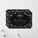 Tarjeta de vacaciones elegante en negro, blanco y dorado con ciervos y vegetación invernal dentro de un marco de copo de nieve. Se utiliza una hermosa tipografía para dar un toque festivo adicional a esta tarjeta de felicitación. Personalice fácilmente esta tarjeta de vacaciones sin foto en línea.