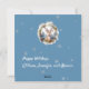 Ciervo en un frasco Tarjeta plana de copos de nieve azules: un hermoso ciervo ha sido capturado en los árboles nevados. Alrededor del frasco de conserva hay un hermoso fondo azul con brillantes copos de nieve plateados que salpican el fondo. La parte delantera dice "Feliz Navidad" y "deseando que tengas recuerdos alegres y felices fiestas". Todo el texto es personalizable, por lo que puedes mantener el sentimiento o cambiarlo. Es una hermosa tarjeta laica para la temporada navideña. La parte trasera de esta tarjeta plana tiene una hermosa imagen de un ciervo, pero esta se puede cambiar por una foto familiar, si lo deseas.