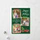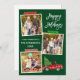 La moderna tarjeta de vacaciones Felices Fiestas 3 Collage de fotos con guión de pincel incluye Cinta de artesanías y Camión Rojo Vintage de color de agua con árbol de Navidad. Fondo verde forestal.