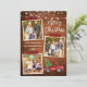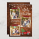 La tarjeta navideña Merry Christmas 3 Collage de fotos con escritura de pincel moderno incluye cinta de artesanías rojas y camionetas de color de agua con árbol de Navidad. Madera rústica de campo con cadenas de luz.