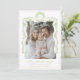 Tarjeta de vacaciones Cinta de lazo rosa Preppy Grandmillennial , tarjeta de Navidad con foto personalizada y texto editable.