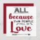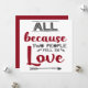 Esta encantadora tarjeta de saludo es perfecta para El día de San Valentín, cumpleaños o aniversarios, y cuenta con la leyenda "Todo porque dos personas se enamoraron", escrita con fuentes modernas rojas y grises oscuras sobre un fondo blanco, y decorada con corazones pequeños y una flecha gris.