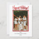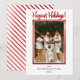 Diseño de vacaciones de foto de pan de oro rojo falso y blanco con estilo elegante y con clase con un marco rojo de pan de oro falso en la parte delantera para su foto y la felicitación, "Felicidades Vacaciones" también en pan de oro rojo falso con rayas diagonales rojas falsas y blancas en la parte posterior. Diseño compuesto por Holiday Hearts Designs (derechos reservados) con foto de marcador de posición de plantilla a través de Unsplash.