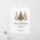 Celebrate the holidays in unique style with this artistic Christmas greeting card featuring three watercolor Christmas trees in elegant earthy tones of green and gold. A chic leopard print pattern adds a modern twist to the traditional design, creating a balance between cozy minimalism and festive sophistication. Perfect for sending warm wishes, these cards are ideal for anyone who loves trendy, handcrafted designs with personality. Printed with high-quality detail, this modern Christmas card brings together watercolor charm, neutral hues, and playful artistry for a memorable holiday greeting. Personalize easily and make every message special this season.