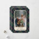 This elegant and contemporary holiday card features a plaid pattern that includes a "With Love From" message along with your family name. It showcases shades of green, dark blue, and red, creating a classy and nostalgic English holiday ambiance. You can personalize the card by adding your family photo on the front and text on the back. This card is perfect for sending Christmas messages and wishes in a traditional colonial style, making it an excellent choice for a charming and sophisticated theme.