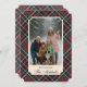 This elegant and contemporary holiday card features a plaid pattern that includes a "With Love From" message along with your family name. It showcases shades of green, dark blue, and red, creating a classy and nostalgic English holiday ambiance. You can personalize the card by adding your family photo on the front and text on the back. This card is perfect for sending Christmas messages and wishes in a traditional colonial style, making it an excellent choice for a charming and sophisticated theme.