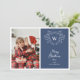Tarjeta Festiva Classy crest azul y blanco 2 fotos
