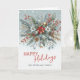 This holiday greeting card is distinguished by its elegant and unique design. It features a classic "Happy Holidays" greeting, which you can customize to your preference, set against a beautiful dark teal blue green, white, and maroon red wreath bouquet pattern. The front of the card includes space for your family name and a seasonal message, while the inside provides an ideal area for adding a custom message or poem. It's a stylish way to send your holiday wishes.