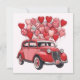 Tarjeta Festiva Coche antiguo con globos del Día de San Valentín