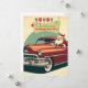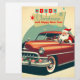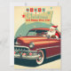 Tarjeta Festiva Coche rojo antiguo y Papá Noel