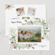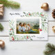 Celebre la temporada con esta hermosa tarjeta navideña que presenta su foto horizontal en la parte frontal rodeada de follaje de acuarela, acentuada con bayas rojas. La parte posterior presenta 5 de tus fotos favoritas acentuadas con botánicas navideñas. Simple y hermoso, pero moderno y festivo, una tarjeta perfecta para enviar deseos navideños o de año nuevo.