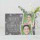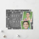 Esta tarjeta de vacaciones dice "Feliz Navidad y Feliz Año Nuevo" en una tipografía elegante, con copos de nieve a mano y fondo de pizarra. Presentando dos de tus fotos. Personalice con sus propias fotos y texto una elegante tarjeta de vacaciones que es totalmente propia. Viene con un patrón de copos de nieve a la espalda.