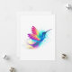 Colibrí luminoso, irrisorio, exótico volador sobre fondo blanco, pintado con pintura multicolor, acuarela. Colibrí arcoiris.