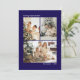 Tarjeta Festiva Collage de 4 Fotos Personalizadas de Familia Azul