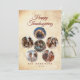 Celebra el día de Acción de Gracias con nuestra cuidadosa tarjeta de vacaciones, perfecta para expresar tu gratitud y cálidos deseos. El anverso de la tarjeta presenta un collage único de seis fotos dispuestas en forma redondeada, lo que le permite mostrar momentos y recuerdos apreciados. La elegancia de las letras en forma de caligrafía muestra un mensaje festivo, añadiendo un toque de sofisticación al diseño. Al revés, un emotivo mensaje de Acción de Gracias completa este significativo saludo, lo que lo hace una manera ideal de conectarse con sus seres queridos durante esta temporada de agradecimiento.