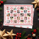 Collage de fotos con copos de nieve rojos y Navidades desea tarjeta de vacaciones. Muestra un collage de fotos de dieciocho 18 fotos familiares con bordes rojos, copos de nieve rojos y los Navidades desean "Feliz Navidad". Todas las fotos excepto dos son de fotografía © Storytree Studios, Stanford, CA