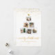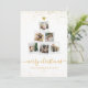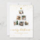 Tarjetas de Navidad personalizadas que incluyen un collage de fotos en forma de árbol de Navidad con 6 fotos junto con una elegante tipografía minimalista en color oro. En el reverso aparece tu mensaje de vacaciones personalizado a amigos y familiares con una foto cuadrada.
