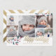 Esta caprichosa y festiva tarjeta de vacaciones de 6 fotos cuenta con un collage de fotos, bayas de invierno y dice "felices fiestas" en lámina de oro falsa que se imprime plana.