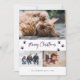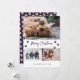 Fotografía personalizado púrpura con tarjetas de Navidades con tres fotos con un título con letras a mano en el fondo frontal y morado con caída de la nieve y huellas de pata en la parte posterior. Personaliza fácilmente estas tarjetas de fotos de Navidad de gato morado con tus imágenes, un nombre familiar y el año. Esta tarjeta de Navidades adorable se puede convertir en cualquier color utilizando la herramienta de personalización.