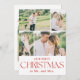Personalizar de esta "Tarjeta navideña de primer Collage de fotos de recién casados" que incluye un collage especial de cuatro fotos con fotos bodas de una pareja en la parte delantera de la tarjeta y una foto única enmarcada en una forma de arco única en la parte posterior de la tarjeta de felicitación, haciendo de tu tarjeta una única. Un diseño moderno y minimalista de vacaciones en rojo y blanco aporta un toque festivo moderno pero atemporal, con el mensaje de sus Navidades con las palabras "Nuestra primera Navidad como Sr. y MRS" en la tipografía contemporánea. Esta tarjeta de vacaciones es la forma perfecta de enviar alegría de vacaciones con un toque personal. Póngase en contacto con el diseñador de tiendas para una mayor personalización si es necesario.