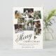La temporada navideña se ha vuelto más elegante con nuestra nueva tarjeta de nueve Navidades fotográficos. Muestra tus momentos familiares favoritos con un diseño moderno de collage de fotos en el frente, complementado con un hermoso guión de "Feliz Navidad" y un mensaje personalizado. La parte trasera está decorada con un toque botánico natural con pinecones, copos de nieve y vegetación de invierno, lo que aporta un toque de elegancia rústica. Envíe cálidos deseos a sus seres queridos con esta tarjeta de vacaciones, combinando encanto personal con elegancia intemporal.