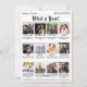 Celebra las vacaciones con un diseño único de Navidades al estilo de un periódico vintage que convierte la historia de tu familia en noticias de primera plana. En la parte delantera se presenta la pantalla de noticias de los Navidades con espacio para una gran foto, el nombre de su familia y un mensaje de bienvenida personalizado debajo. En la parte trasera, el diseño "¡Qué año!" destaca doce secciones de fotos de personalizable —una por cada mes— perfectas para mostrar hitos, ocasiones especiales o momentos cotidianos. Con su tipografía retro, detalles dibujados a mano y estética nostálgica de los periódicos, este diseño es una manera sincera y creativa de compartir la alegría. Personalice con sus fotos, nombres y mensajes para que todo el mundo lo aprecie.