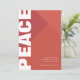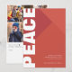"PAZ" moderna en blanco en formato vertical a lo largo del lado izquierdo de la tarjeta. Tonos de rojo en forma geométrica. Agrega tu collage de fotos favorito con todo el texto personalizable en tarjeta de vacaciones sans serif.