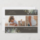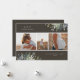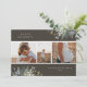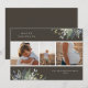 Bonito acuarela, decoración de invierno, tres tarjetas de vacaciones fotográficas. Características de la carta, vegetación de invierno en tonos suaves de azul y verde con fondo de color arena gris. La plantilla proporciona dos espacios para el texto del personalizado y tres fotos.
