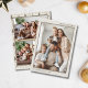 Celebra la alegría de la temporada con esta moderna tarjeta de collage de fotos de Navidades verdes sabios, diseñada para compartir tus deseos más cálidos con tus seres queridos. Con espacio para cuatro preciadas fotos familiares en la parte delantera, esta tarjeta de vacaciones ofrece una hermosa manera de resaltar tus recuerdos favoritos del año. En la parte trasera se exhibe un encantador patrón invernal con árboles festivos y copos de nieve, que le dan un toque acogedor de temporada. Perfecto para enviar vítores de vacaciones a amigos y familia, esta tarjeta personalizada es una manera elegante y sentida de estar conectado.