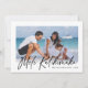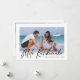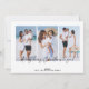 La tarjeta de vacaciones de collage de fotos con tipografía moderna presenta 4 fotos, la escritura tipográfica Mele Kalikimaka en letra manuscrita de moda, el nombre de la familia y un año en la parte frontal. Personalice aún más con 3 fotos y texto en la parte trasera. Tarjeta perfecta elegante y simple para desear felices fiestas a familiares y amigos.