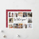 Tarjeta postal de vacaciones de collage de fotos del año en revisión con 12 fotos familiares, texto caligráfico de 'qué año', año y nombre de la familia en la parte delantera. Personalice con su mensaje y noticias familiares en la parte posterior.