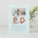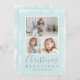 Envíe alegría de vacaciones con esta sencilla y moderna tarjeta de Navidades plana que incluye un collage de fotos con tres de sus fotos familiares favoritas sobre un fondo de textura verde menta en la parte delantera y una foto en la parte trasera. El frente tiene el saludo religioso, "Bendiciones de Navidades" junto con el nombre de su familia y el año.