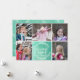 Envíe a alguien los deseos más cálidos con este mensaje tipográfico dibujado a mano rodeado de una corona de hojas y ramas blancas. Este diseño redondeado se basa en una textura de color de agua verde marino, ideal para las vacaciones. El marco blanco hace que sea fácil convertir esto en una tarjeta de collage de 5 de tus fotos familiares favoritas. Se coordina con mi juego de tarjetas de felicitación de deseos más cálidos.