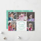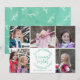 Envíe a alguien los deseos más cálidos con este mensaje tipográfico dibujado a mano rodeado de una corona de hojas y ramas blancas. Este diseño redondeado se basa en una textura de color de agua verde marino, ideal para las vacaciones. El marco blanco hace que sea fácil convertir esto en una tarjeta de collage de 5 de tus fotos familiares favoritas. Se coordina con mi juego de tarjetas de felicitación de deseos más cálidos.