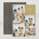 Tarjeta de felicitación de collage de fotos de múltiples sangrados completos minimalista Año Nuevo con patrón floral retro festivo divertido en negro y dorado