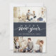 ¡Bienvenido al Año Nuevo con un toque personal usando nuestra tarjeta de vacaciones de Año Nuevo con collage de fotos Modern Midnight Blue! Esta tarjeta exclusiva muestra dos fotos queridas, elegantemente separadas por un texto horizontal "Feliz Año Nuevo" junto con el nombre de su familia y la fecha, creando un saludo único y personalizado.