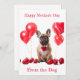 Tarjeta Festiva Collar de corazón rojo personalizado para Bulldog